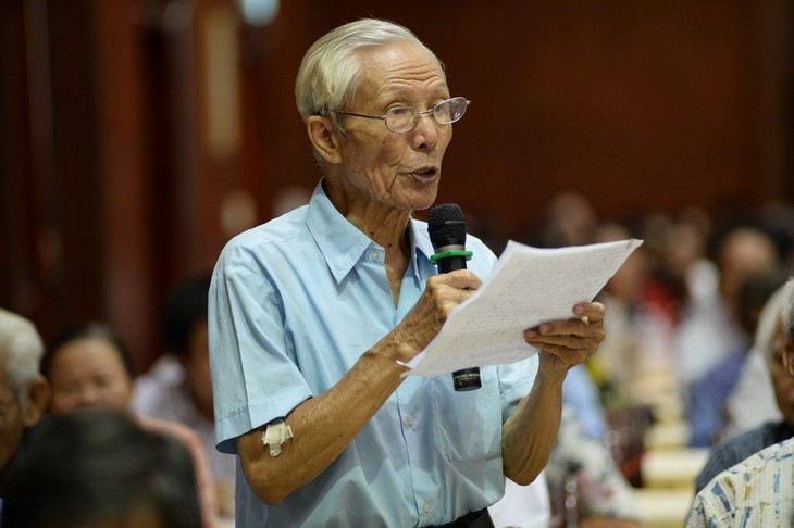 Cử tri Hồ Quang Chính phát biểu kiến nghị tại buổi tiếp xúc cử tri của đoàn ĐBQH số 1 - Ảnh: TỰ TRUNG