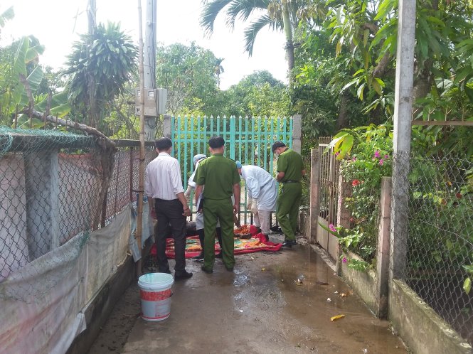 | Cơ quan công an đang khám nghiệm hiện trường - Ảnh: Hoài Thương |