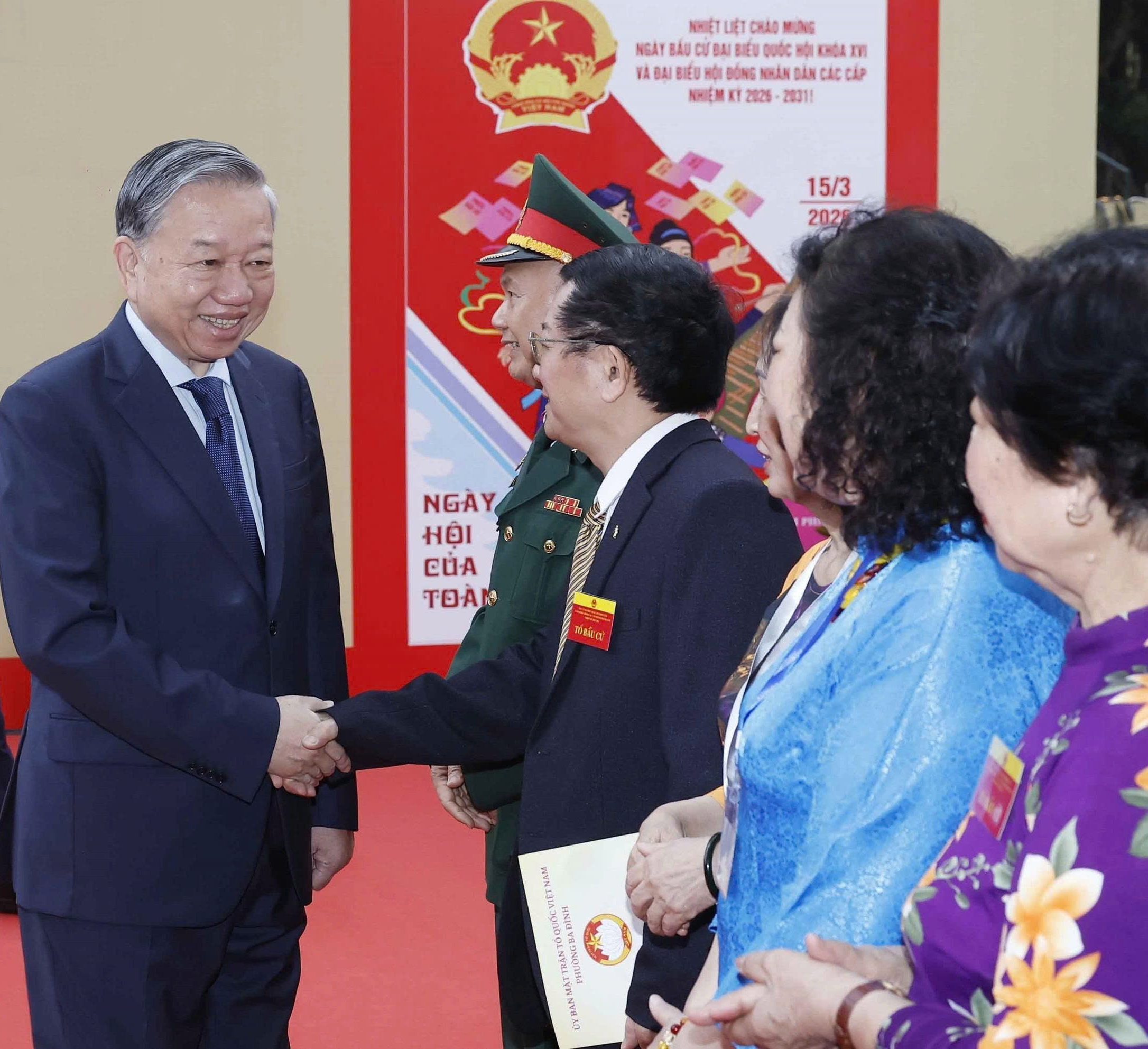 Tổng Bí thư Tô Lâm đến bỏ phiếu bầu cử tại Khu vực bỏ phiếu số 02 phường Ba Đình, thành phố Hà Nội - Ảnh: TTXVN