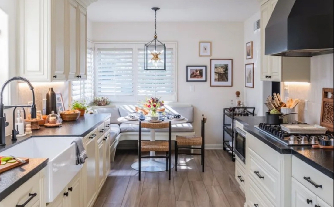 Đảo bếp tích hợp ghế dài, đồng thời là nơi chứa đồ - Nguồn: Jonathan Scott/HGTV