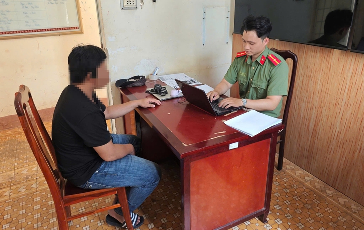 Công an tỉnh Đắk Lắk làm việc với 1 người đăng tải thông tin sai sự thật - Ảnh: HOÀNG MINH