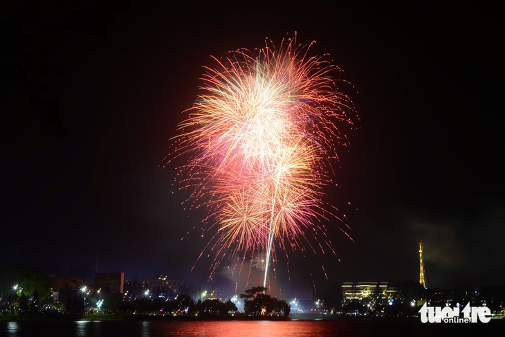 Bắn pháo hoa tầm thấp ở hồ Xuân Hương - Đà Lạt - Ảnh: M.H.