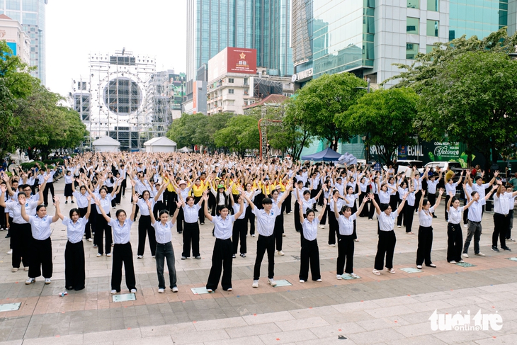 Hơn 2.000 sinh viên TP.HCM tham gia chương trình đồng diễn "Khát vọng vươn mình” diễn ra tại phố đi bộ Nguyễn Huệ (phường Sài Gòn), chiều 7-1 - Ảnh: THANH HIỆP
