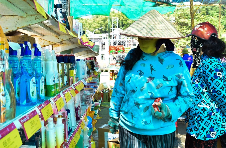 Ở đảo xa nên điều kiện sinh hoạt và nhu cầu mua sắm các vật dụng hàng hóa thiết yếu phục vụ đời sống hằng ngày còn khó khăn. Do đó tàu chở hàng hóa đến bán, bà Mai và người dân nhộn nhịp ra mua, không khí Tết sớm trên đảo thêm rộn ràng.