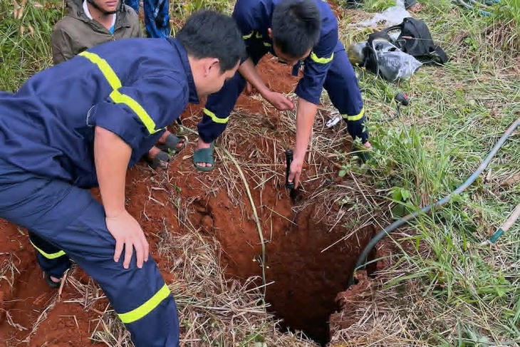 Lực lượng chức năng xác định nạn nhân mắc kẹt trong hố sâu khoảng 10m, đường kính chỉ 70-80cm.