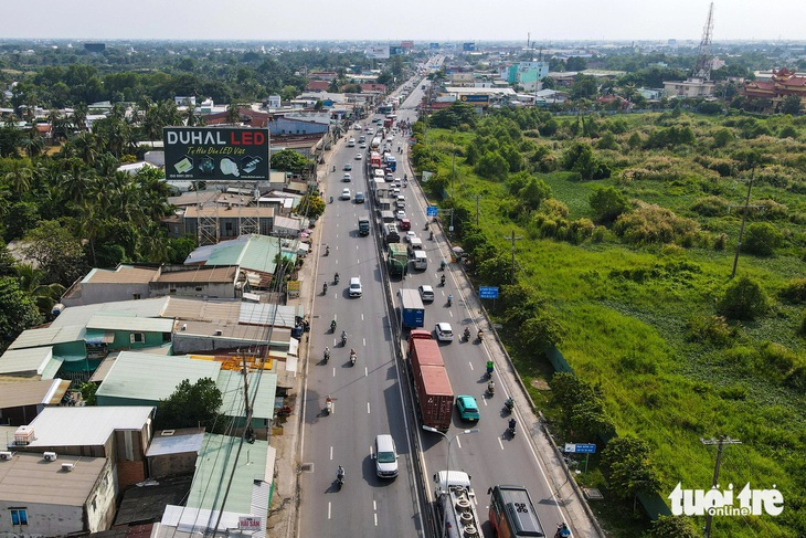 Hiện trạng quốc lộ 1 có từ 4 - 6 làn xe, thường xuyên ùn tắc vào dịp lễ, Tết - Ảnh: PHƯƠNG NHI