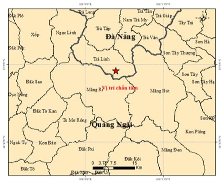 Trong đó, xã Trà Linh xảy ra 4 trận động đất mạnh từ 2,6 - 3,1 độ (độ lớn M), các trận động đất này có độ sâu chấn tiêu khoảng 8,1km.