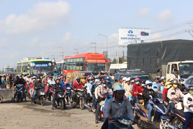 | Tại nạn gây kẹt xe trên quốc lộ 1 - Ảnh: Hải Hiếu |