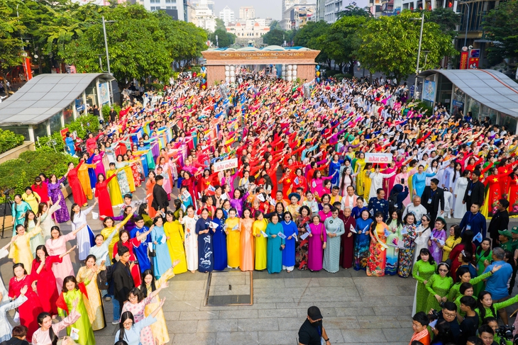 Người dân TP.HCM tham gia đồng diễn áo dài trên đường đi bộ Nguyễn Huệ