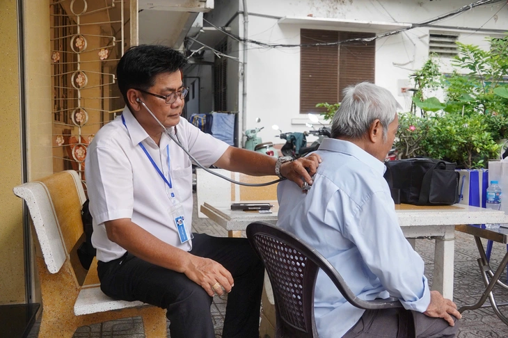 Tổ địa bàn của Trạm y tế phường Xuân Hòa đến nhà khám bệnh cho người dân - Ảnh: L.P.