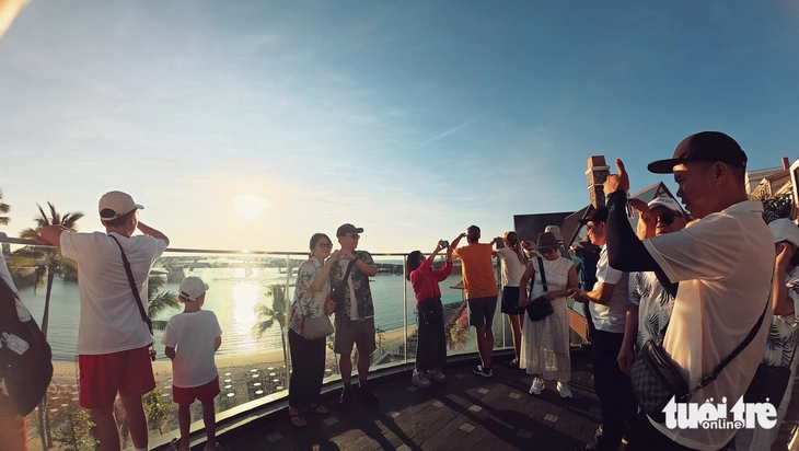 Khách quốc tế thích thú check-in tại thị trấn Hoàng Hôn (Phú Quốc) - Ảnh: NGUYỄN HIỀN