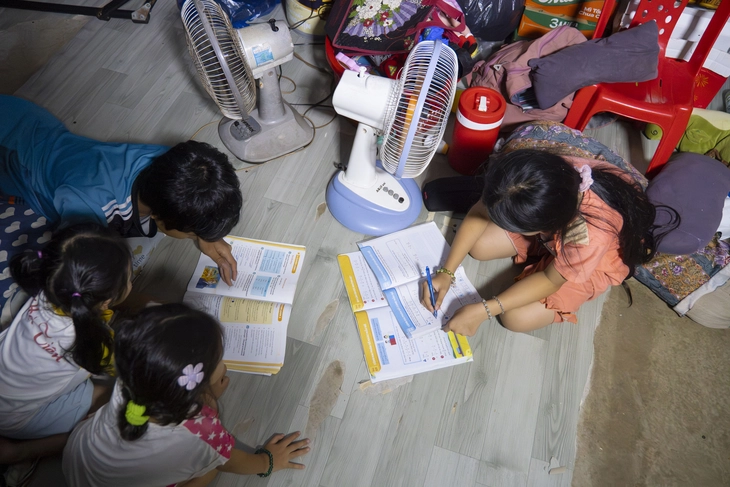 Khó khăn là vậy song các bé vẫn chăm học và ngoan ngoãn, thương yêu nhau