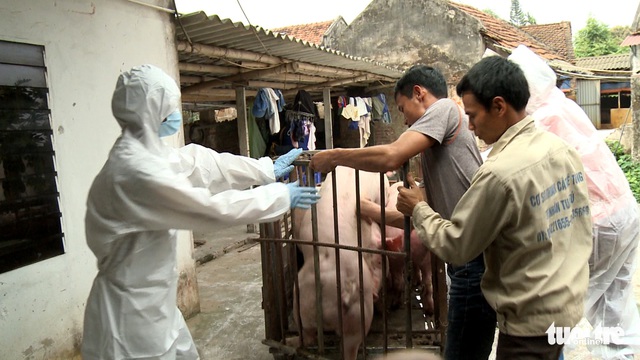 Lợn mắc bệnh dịch tả lợn Châu Phi tại Hưng Yên được đem đi tiêu hủy - Ảnh: P. HẠNH