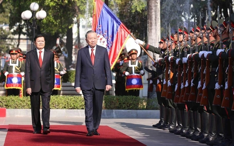 Trong khuôn khổ chuyến thăm Lào, ngày 5-2, Tổng Bí thư Tô Lâm đã gặp Chủ tịch Quốc hội Lào Saysomphone Phomvihane và Thủ tướng Lào Sonexay Siphandone.