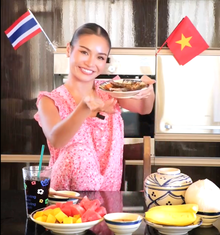 Á hậu Miss Cosmo 2024 Mook Karnruethai Tassabut giới thiệu món Việt Nam - Ảnh chụp màn hình