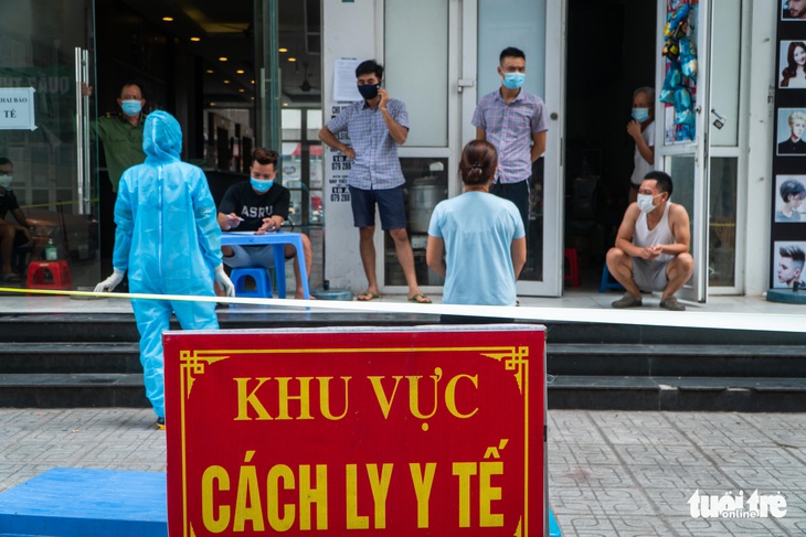 Một chung cư tại Hà Nội thực hiện cách ly y tế vì liên quan tới ca bệnh COVID-19 - Ảnh: PHẠM TUẤN
