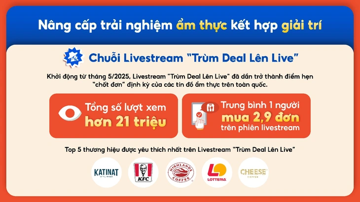 Chỉ sau khi khởi động từ tháng 5-2025, các phiên livestream trong năm đã thu hút tổng cộng hơn 21 triệu lượt xem, tạo sức lan tỏa mạnh mẽ trên mạng xã hội và góp phần định hình xu hướng mới cho ngành giao đồ ăn trực tuyến.