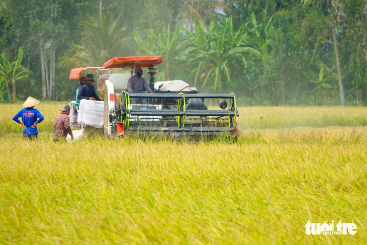 An Giang hiện chưa ghi nhận có diện tích lúa bị ảnh hưởng do mặn gây ra. Đến nay địa phương đã thu hoạch được hơn 407.880ha lúa đông xuân, đạt hơn 81% so với diện tích gieo sạ - Ảnh: CHÍ CÔNG