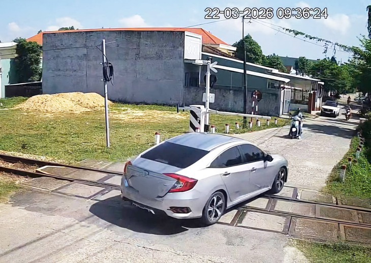 Ô tô vượt đèn đỏ nơi đường bộ giao nhau với đường sắt tại xã Tam Xuân, TP Đà Nẵng