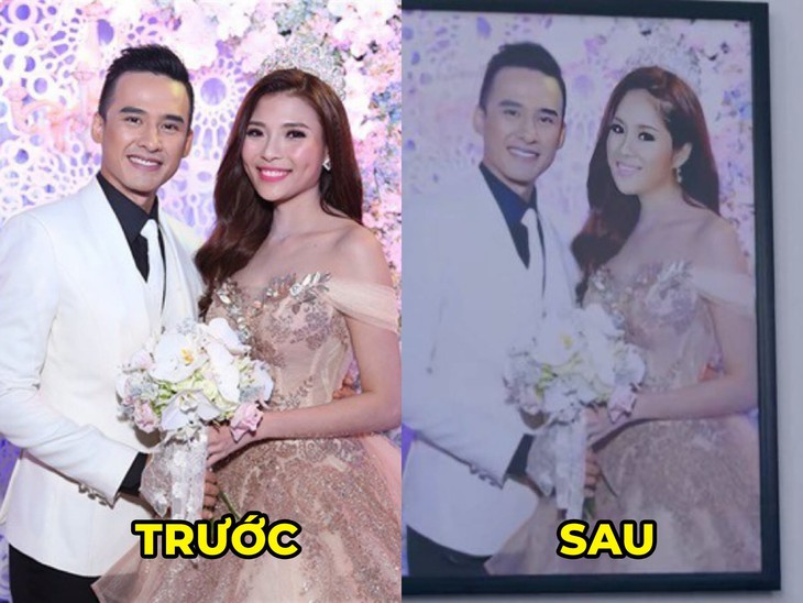 Ảnh cưới của Lương Thế Thành - Thúy Diễm ngoài đời chỉ thay đổi khuôn mặt cô dâu thành vợ chồng Hoàng Dũng và Mai trong phim Bóng ma hạnh phúc - Ảnh: ĐPCC