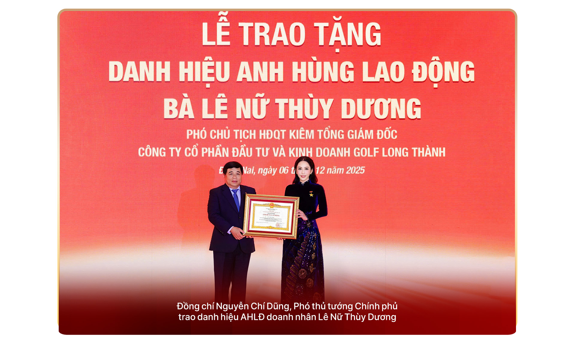 Trước đó, vào ngày 6-12-2025, Tỉnh ủy - Ủy ban nhân dân - Hội đồng nhân dân - Ủy ban Mặt trận Tổ quốc Việt Nam tỉnh Đồng Nai đã long trọng tổ chức Lễ trao tặng danh hiệu Anh hùng Lao động cho bà Lê Nữ Thùy Dương.