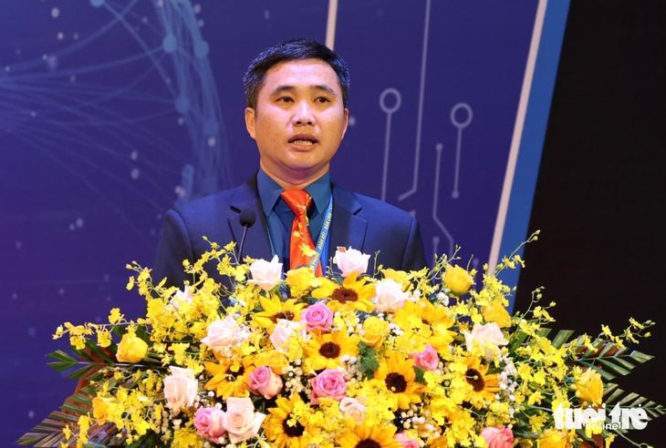 Bí thư Tỉnh Đoàn Lâm Đồng Trương Minh Quang phát biểu tại đại hội - Ảnh: M.N.