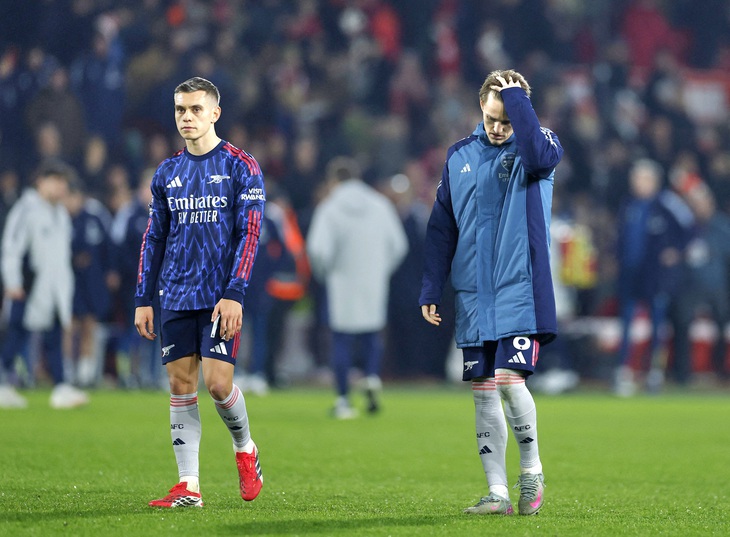 Cầu thủ Arsenal thất vọng sau khi bị Nottingham Forest cầm hòa 0-0 - Ảnh: REUTERS