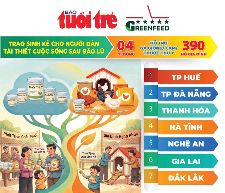Từ ngày 3-3 đến hết tháng 3-2026, Công ty cổ phần GREENFEED Việt Nam cùng báo Tuổi Trẻ tổ chức chương trình hỗ trợ con giống "Tiếp sức đồng bào miền Trung - miền Bắc tái thiết cuộc sống sau bão lũ" cho 390 hộ dân ở 7 tỉnh thành, với tổng kinh phí khoảng 4 tỉ đồng.