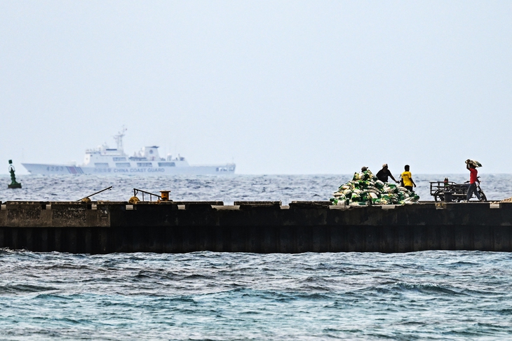 Tàu dân sự Philippines và tàu Hải cảnh Trung Quốc cùng xuất hiện gần đảo Thị Tứ thuộc quần đảo Trường Sa của Việt Nam ngày 21-2 - Ảnh: AFP
