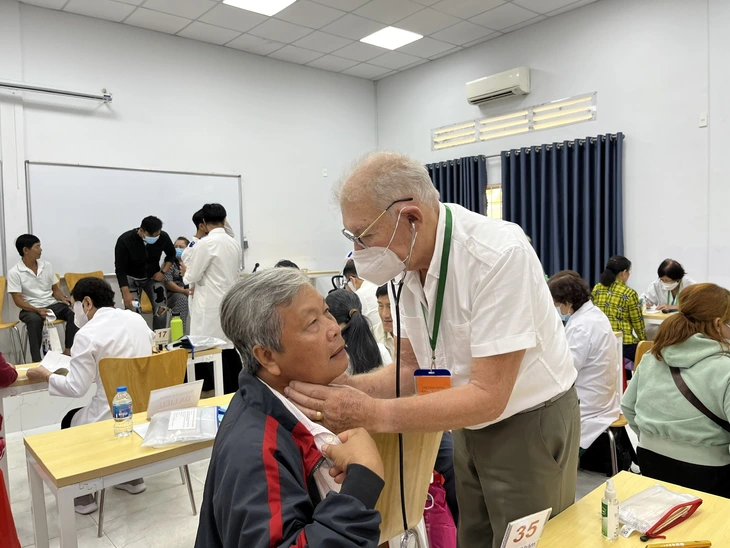 Bác sĩ Jean Claude Labourel (người Pháp) khám bệnh cho người dân Vĩnh Long - Ảnh: LAN NGỌC