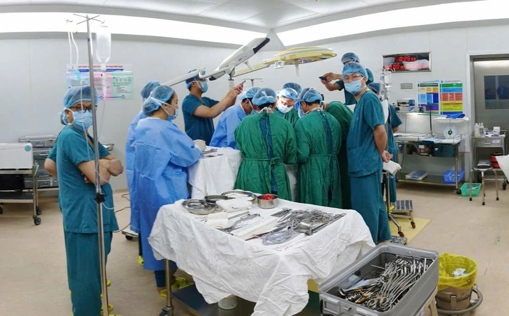 Ê kíp bác sĩ Bệnh viện Từ Dũ và Bệnh viện Chợ Rẫy xuyên đêm mổ lấy khối thai nằm sát động mạch chủ bụng cực hiếm gặp cho người phụ nữ 36 tuổi - Ảnh: Bệnh viện cung cấp