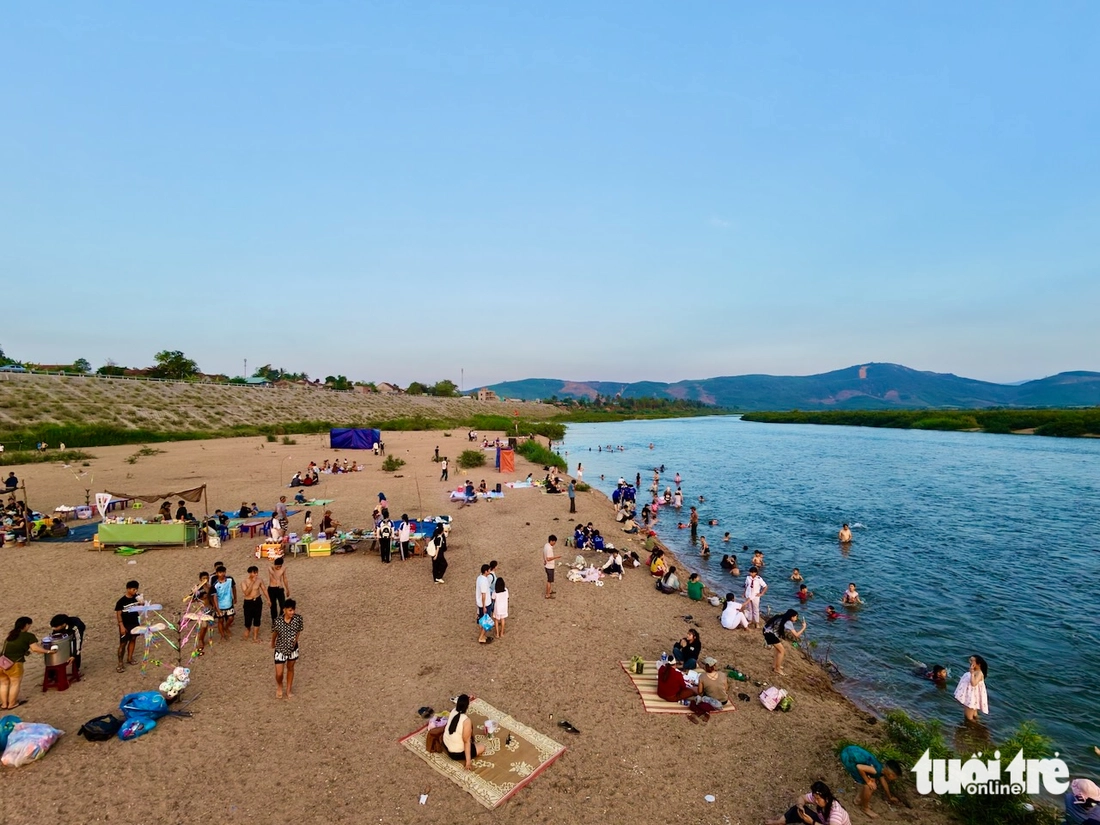 Người dân ngồi kín bờ cát ven sông Ba