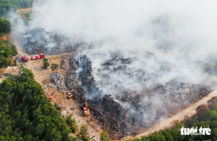 Ông Trần Ngọc Anh - Giám đốc Công ty Môi trường đô thị Thái Hòa, đơn vị quản lý bãi rác - cho biết đến nay đám cháy vẫn chưa được dập tắt hoàn toàn, tiếp tục âm ỉ kéo dài.
