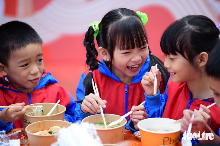 Nhìn các em nhỏ Hòa Thịnh ăn phở mà thấy mùa xuân về - Ảnh: QUANG ĐỊNH