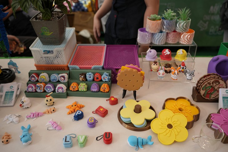 Các sản phẩm xinh xắn làm từ vật liệu tái chế của Alta Plastics được trưng bày tại Ngày hội Việt Nam Xanh 2025 - Ảnh: HỮU HẠNH
