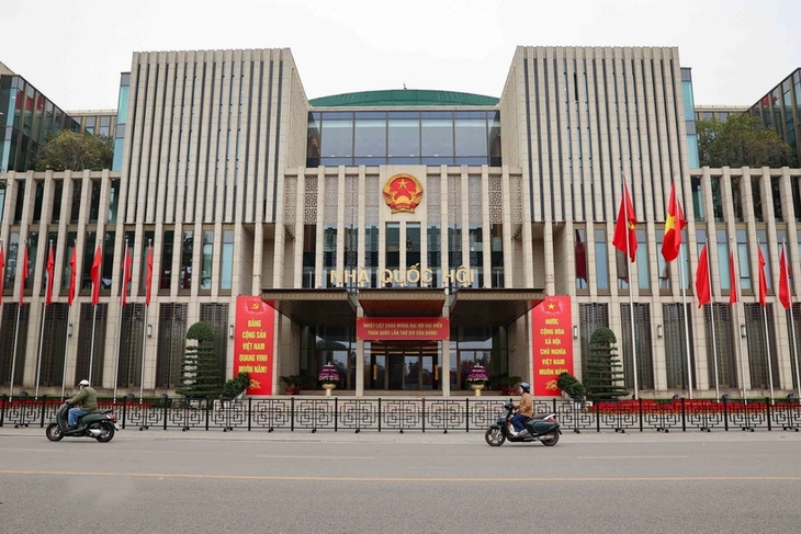 Nhà Quốc hội trang trí cờ hoa chào mừng thành công của Đại hội Đảng XIV - (Ảnh: TTXVN