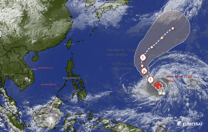 Hiện tâm bão vẫn đang cách phía đông Philippines và Biển Đông khoảng 3.000km.