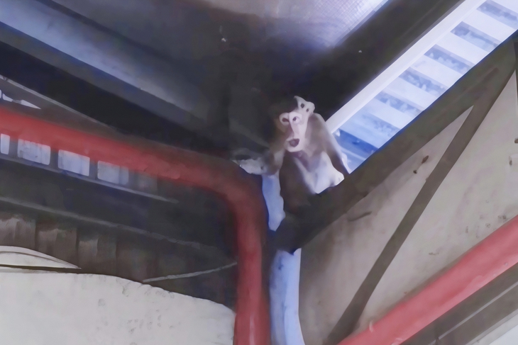 Một trong số những con khỉ xuất hiện quậy phá tại khu vực khuôn viên công ty - Ảnh cắt từ clip do người dân ghi lại