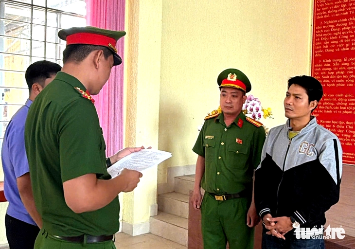 Cơ quan công an tống đạt các quyết định khởi tố đối với Cam - Ảnh: H.T