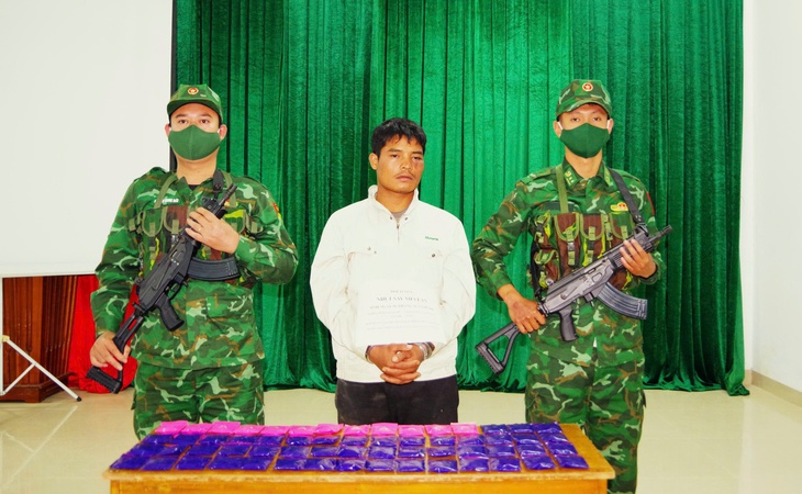 Yout Xay Yalan bị bắt giữ cùng tang vật - Ảnh: BỘ ĐỘI BIÊN PHÒNG QUẢNG NGÃI