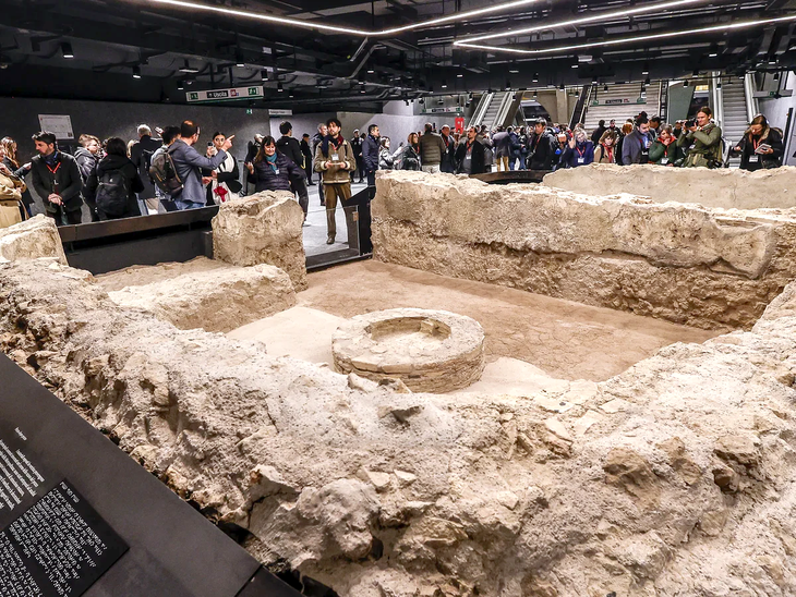 Tại một trong những ga tàu điện ngầm mới nhất của Rome hiện nay, người ta có thể chiêm ngưỡng tàn tích của những nhà tắm nước nóng từng bị hư hại trong Đại hỏa hoạn thành Rome năm 64 sau Công nguyên, xem các mảnh vỡ của những giếng đá cổ và dừng lại trước khu trưng bày những đồ trang trí bằng đá cẩm thạch do các kiến trúc sư La Mã cổ đại tạo ra.