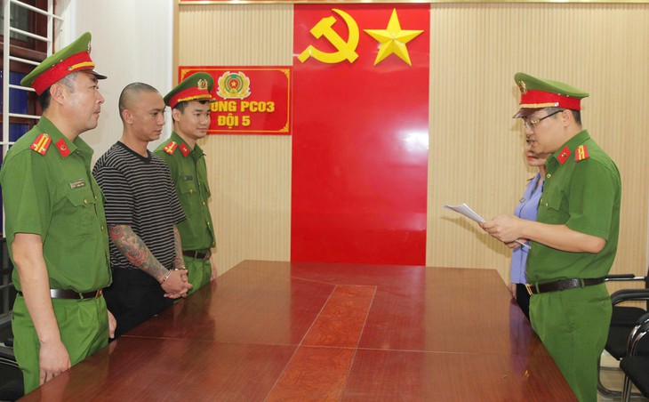 Cơ quan cảnh sát điều tra Công an tỉnh Nghệ An đọc lệnh khởi tố vụ án, khởi tố bị can đối với Nguyễn Duy Sơn - Ảnh: Công an tỉnh Nghệ An
