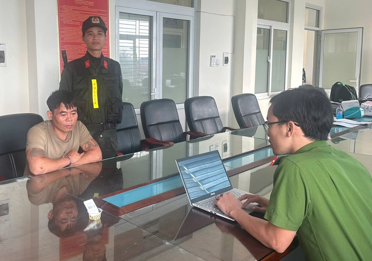 Bùi Văn Thiện làm việc với cảnh sát - Ảnh: MINH CHÂU