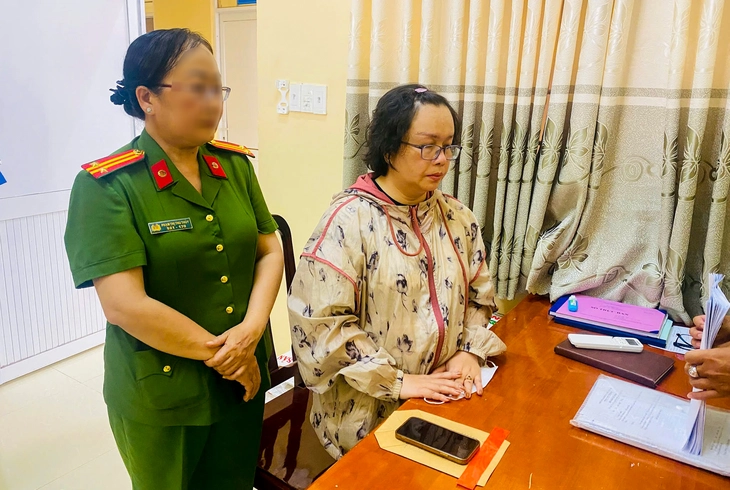 Huỳnh Thị Xuân Mai tại cơ quan công an - Ảnh: CACC
