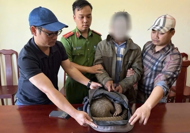 Lực lượng chức năng phát hiện trong ba lô A.K. mang theo có một động vật hoang dã còn sống, được xác định là tê tê.