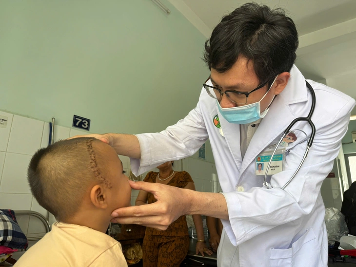 Bác sĩ đang thăm khám vết mổ trước khi cho bệnh nhi xuất viện - Ảnh: Bệnh viện cung cấp