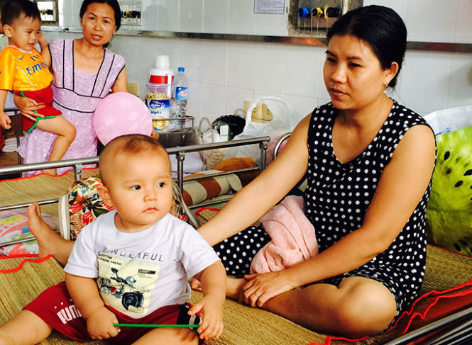 Khi nhập viện bé bị sốt cao, ói nhiều, mệt lả. Dù được điều trị tích cực nhưng bé vẫn đang bị cao huyết áp do bệnh tay chân miệng, bị giật mình, chới với và đang được điều trị bằng thuốc đặc trị đắt tiền.