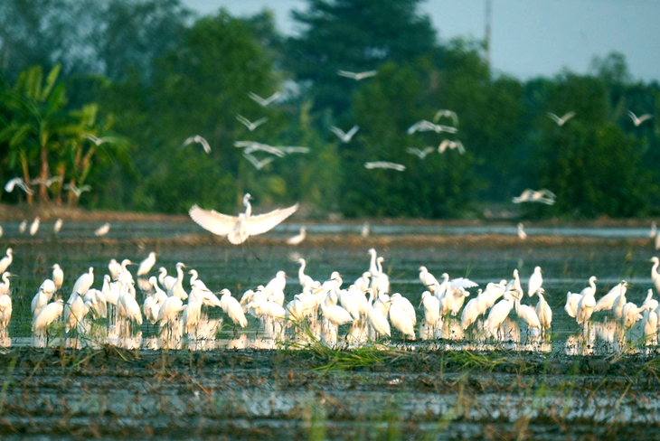 Đàn cò trắng bình yên trên cánh đồng ở xã Ba Sao, tỉnh Đồng Tháp - Ảnh: HỒNG PHƯỚC