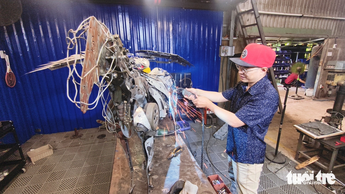 Cuối tháng 1-2026, tại khuôn viên xưởng ở phường An Phú Đông (TP.HCM), anh Nguyễn Tuấn Anh cùng nhóm thợ đang khẩn trương hoàn thiện các mô hình ngựa được lắp ráp từ hàng loạt chi tiết xe máy và ô tô cũ.