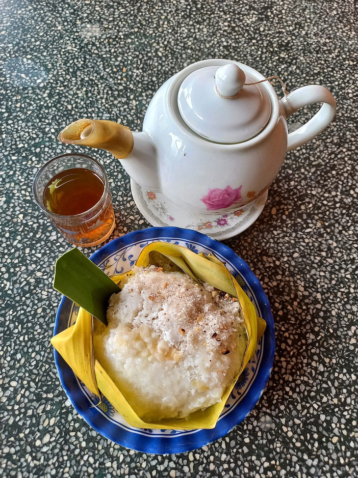 Bên tách trà hằng ngày của ba thường có thêm ít bánh kẹo, hay gói xôi - Ảnh: ĐẶNG TRUNG THÀNH